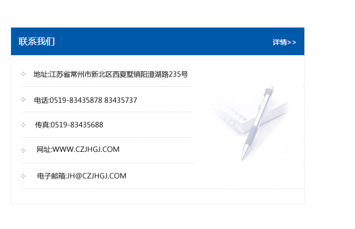 地址:常州市新北區友邦商務大廈1幢16、17層  電話:0519-85101652  傳真:0519-85112595  郵編:213022  網址:www.cz-jiayue_cn.gddfx.com  郵箱:xiajifengaa@163.com